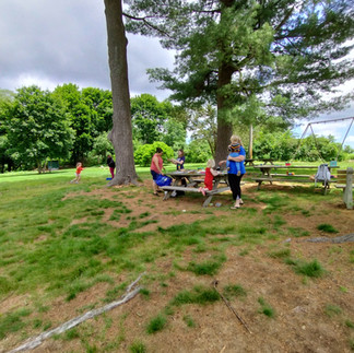 In today's Park Art Pop-Up class on the Summer Solstice, we got to play with negative space with sun-print paper -- Freya's mom aptly described the activity as "painting with the sun"! Children gathered natural materials, chose wooden tiles, and artfully arranged materials on photo-sensitive sun-print paper. While the images developed in the sun, families colored, played with wooden blocks and huge bubbles, and enjoyed this gorgeous morning! Thank you for coming out and playing with us today!